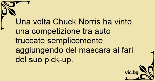 Una volta Chuck Norris ha vinto una competizione tra auto truccate semplicemente aggiungendo del mascara ai fari del suo pick-up.