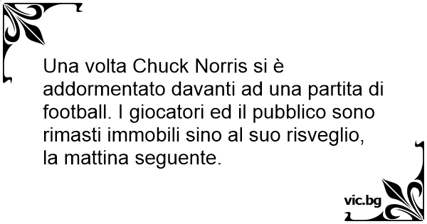 Una volta Chuck Norris si è addormentato davanti ad una partita di football. I giocatori ed il pubblico sono rimasti immobili sino al suo risveglio, la mattina seguente.