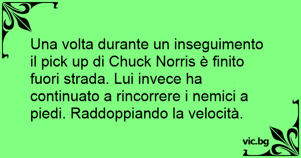 Una volta durante un inseguimento il pick up di Chuck Norris è finito fuori strada. Lui invece ha continuato a rincorrere i nemici a piedi. Raddoppiando la velocità.