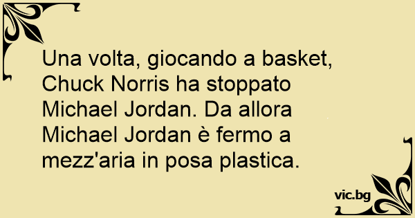 Una volta, giocando a basket, Chuck Norris ha stoppato Michael Jordan. Da allora Michael Jordan è fermo a mezz'aria in posa plastica.