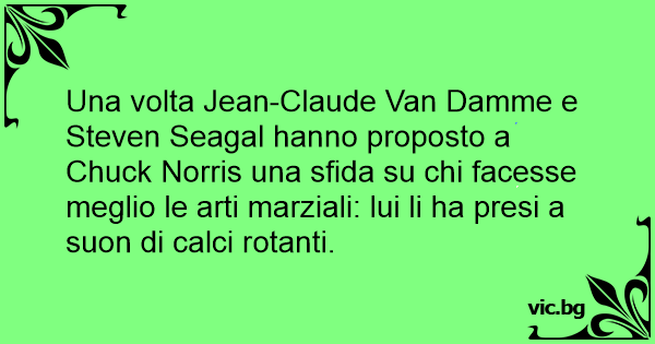 Una volta Jean-Claude Van Damme e Steven Seagal hanno proposto a Chuck Norris una sfida su chi facesse meglio le arti marziali: lui li ha presi a suon di calci rotanti.