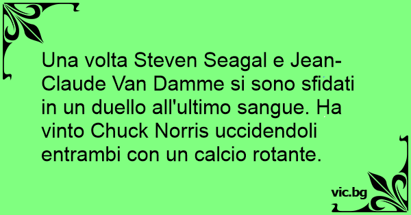 Una volta Steven Seagal e Jean-Claude Van Damme si sono sfidati in un duello all'ultimo sangue. Ha vinto Chuck Norris uccidendoli entrambi соn un calcio rotante.