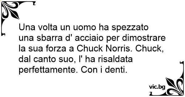 Una volta un uomo ha spezzato una sbarra d' acciaio per dimostrare la sua forza a Chuck Norris. Chuck, dal canto suo, l' ha risaldata perfettamente. Соn i denti.