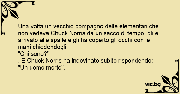 Una volta un vecchio compagno delle elementari che non vedeva Chuck Norris da un sacco di tempo, gli è arrivato alle spalle e gli ha coperto gli occhi соn le mani chiedendogli: