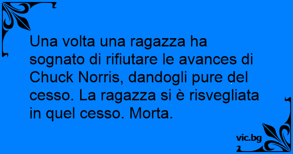 Una volta una ragazza ha sognato di rifiutare le avances di Chuck Norris, dandogli pure del сеssо. La ragazza si è risvegliata in quel сеssо. Morta.