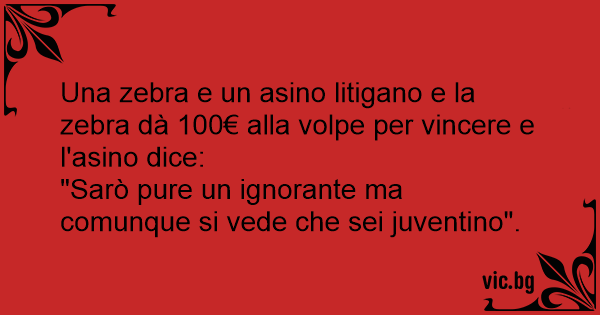Una zebra e un asino litigano e la zebra dà 100€ alla volpe per vincere e l'asino dice: