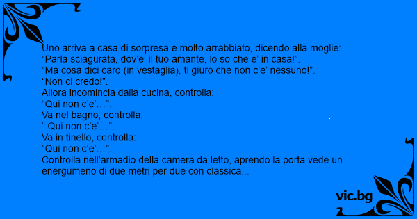 Uno arriva a casa di sorpresa e molto arrabbiato, dicendo alla moglie: