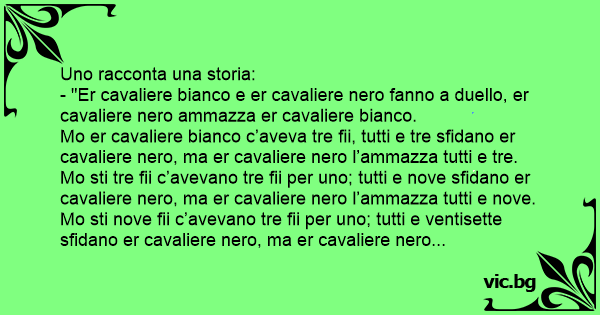 - "Er cavaliere bianco e er cavaliere nero fanno a duello, er cavaliere nero ammazza er cavaliere bianco.