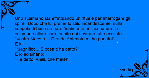 "Vostra Maestà, il Grande Antenato mi ha parlato!"