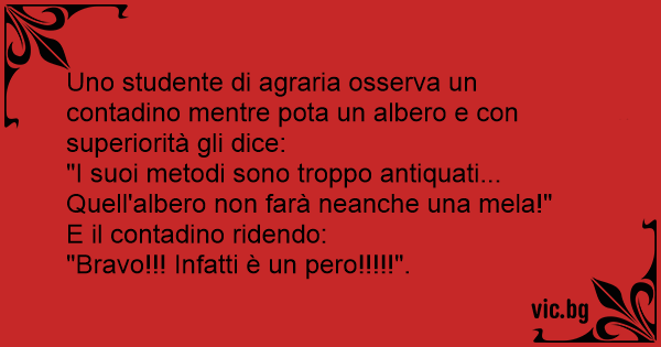 Uno studente di agraria osserva un contadino mentre pota un albero e соn superiorità gli dice: