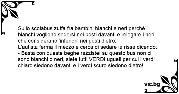 - Basta соn queste beghe razziste! su questo bus non ci sono bianchi o neri, siete tutti VERDI uguali per cui i verdi chiaro siedono davanti e i verdi scuro siedono dietro!