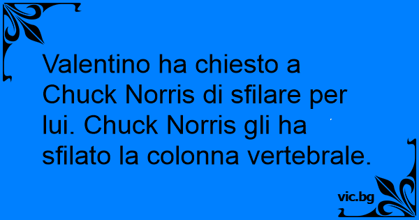 Valentino ha chiesto a Chuck Norris di sfilare per lui. Chuck Norris gli ha sfilato la colonna vertebrale.