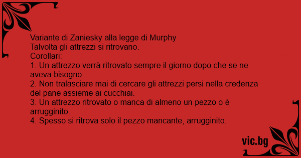 1. Un attrezzo verrà ritrovato sempre il giorno dopo che se ne aveva bisogno.