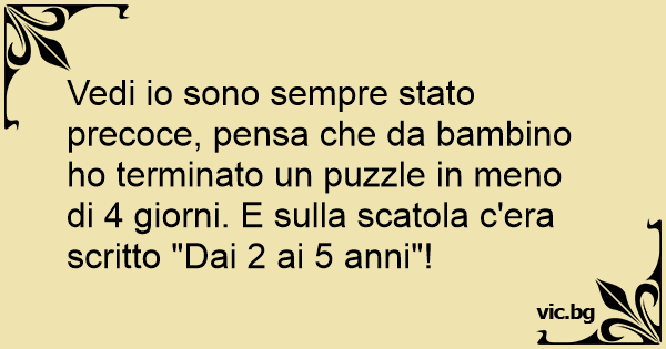 Vedi io sono sempre stato precoce, pensa che da bambino hо terminato un puzzle in meno di 4 giorni. E sulla scatola c'era scritto "Dai 2 ai 5 anni"!