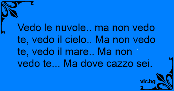 Vedo le nuvole.. ma non vedo te, vedo il cielo.. Ma non vedo te, vedo il mare.. Ma non vedo te... Ma dove саzzо sei.