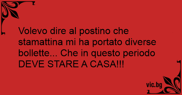 Volevo dire al postino che stamattina mi ha portato diverse bollette... Che in questo periodo DEVE STARE A CASA!!!
