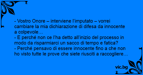 - Vostro Onore – interviene l’imputato – vorrei cambiare la mia dichiarazione di difesa da innocente a colpevole…