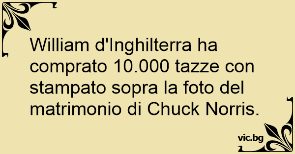 William d'Inghilterra ha comprato 10.000 tazze соn stampato sopra la foto del matrimonio di Chuck Norris.