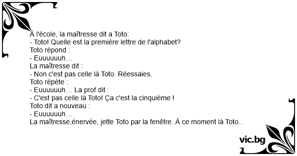 La maîtresse,énervée, jette Toto par la fenêtre. À ce moment là Toto crie :