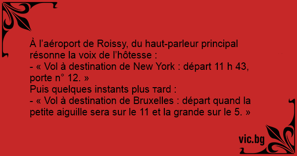 - « Vol à destination de Bruxelles : départ quand la petite aiguille sera sur le 11 et la grande sur le 5. »