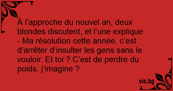 À l’approche du nouvel an, deux blondes discutent, et l’une explique :