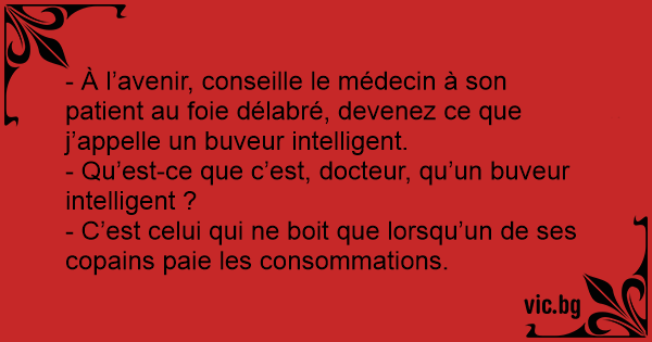 - À l’avenir, conseille le médecin à son patient au foie délabré, devenez ce que j’appelle un buveur intelligent.