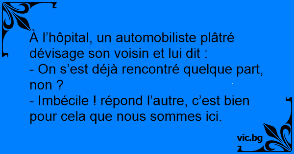 À l’hôpital, un automobiliste plâtré dévisage son voisin et lui dit :