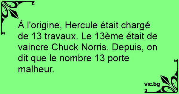 À l'origine, Hercule était chargé de 13 travaux. Le 13ème était de vaincre Chuck Norris. Depuis, on dit que le nombre 13 porte malheur.