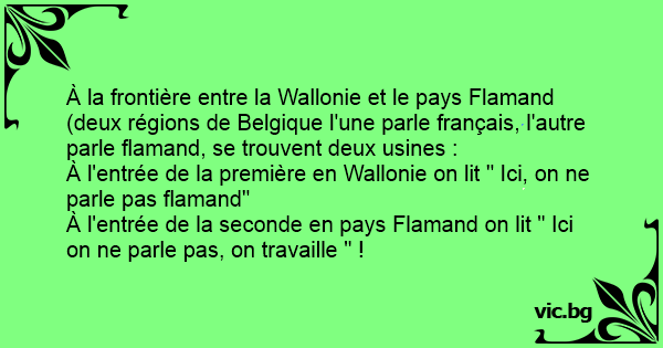 À l'entrée de la seconde en pays Flamand on lit " Ici on ne parle pas, on travaille " !