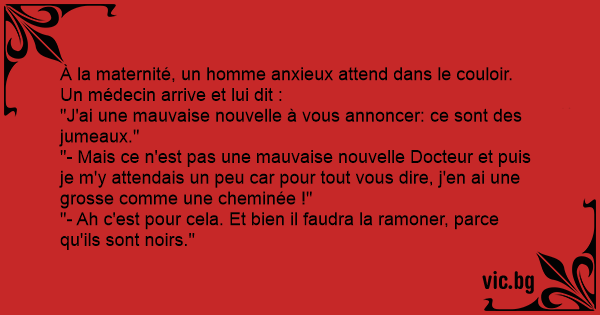 À la maternité, un homme anxieux attend dans le couloir. Un médecin arrive et lui dit :
