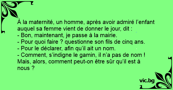 À la maternité, un homme, après avoir admiré l’enfant auquel sa femme vient de donner le jour, dit :