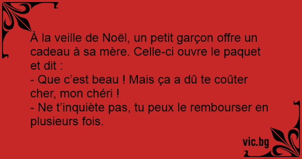 À la veille de Noël, un petit garçon offre un cadeau à sa mère. Celle-ci ouvre le paquet et dit :