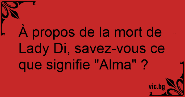 À propos de la mort de Lady Di, savez-vous ce que signifie "Alma" ?