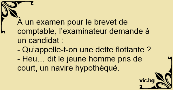 À un examen pour le brevet de comptable, l’examinateur demande à un candidat :