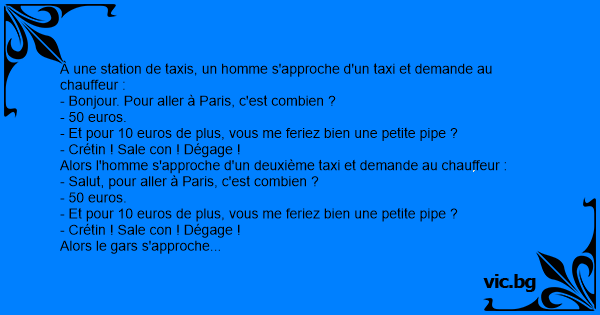 Alors l'homme s'approche d'un deuxième taxi et demande au chauffeur :