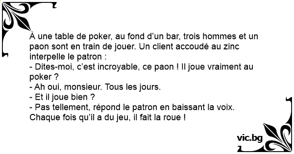 - Dites-moi, c’est incroyable, ce paon ! Il joue vraiment au poker ?
