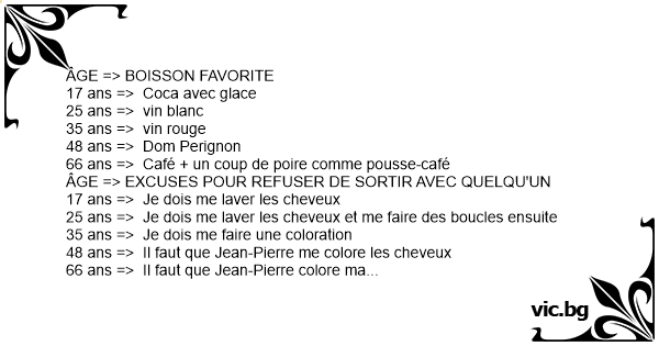 ÂGE => EXCUSES POUR REFUSER DE SORTIR AVEC QUELQU'UN