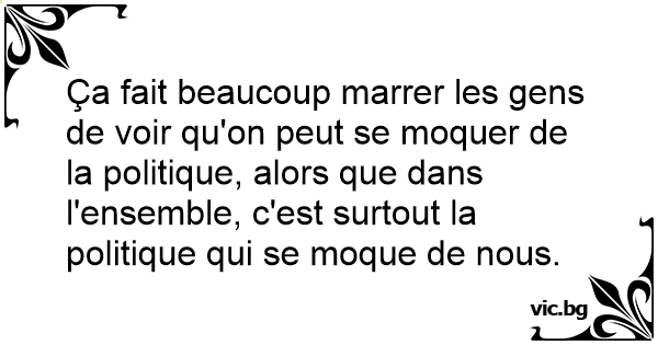 Ça fait beaucoup marrer les gens de voir qu'on peut se moquer de la politique, alors que dans l'ensemble, c'est surtout la politique qui se moque de nous.