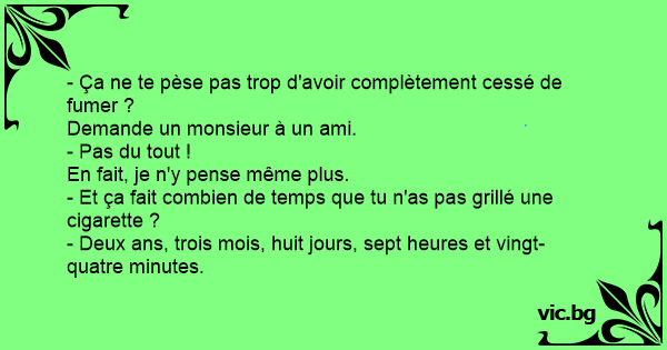 - Et ça fait combien de temps que tu n'as pas grillé une cigarette ?