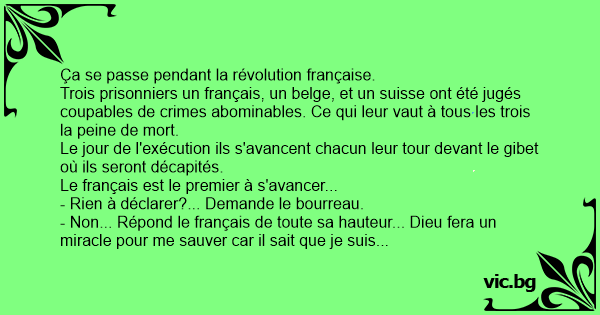 - Et bien oui... répond le suisse... Je voulais juste vous dire qu'il y a un gros noeud dans la corde qui retient votre gros couperet...