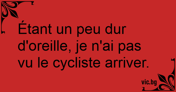 Étant un peu dur d'oreille, je n'ai pas vu le cycliste arriver.