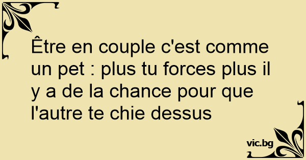 Être en couple c'est comme un pet : plus tu forces plus il y a de la chance pour que l'autre te chie dessus