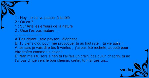 B: Tu viens d'où pour me provoquer tu as tout raté , ta vie aussi !