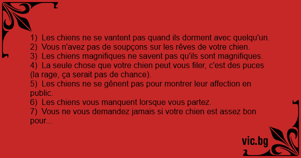 1) Les chiens ne se vantent pas quand ils dorment avec quelqu'un.