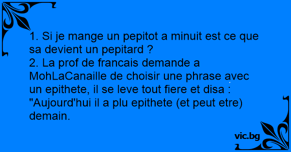 2. La prof de francais demande a MohLaCanaille de choisir une phrase avec un epithete, il se leve tout fiere et disa :