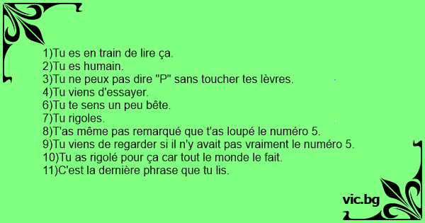 10)Tu as rigolé pour ça car tout le monde le fait.