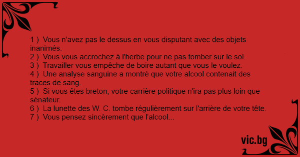4 ) Une analyse sanguine a montré que votre alcool contenait des traces de sang.