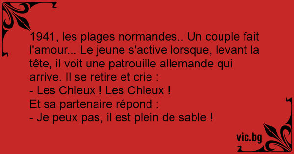 1941, les plages normandes.. Un couple fait l'amour... Le jeune s'active lorsque, levant la tête, il voit une patrouille allemande qui arrive. Il se retire et crie :