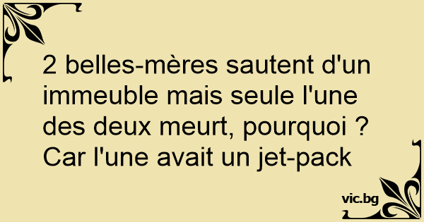 2 belles-mères sautent d'un immeuble mais seule l'une des deux meurt, pourquoi ?