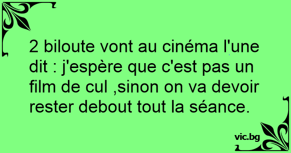 2 biloute vont au cinéma l'une dit : j'espère que c'est pas un film de cul ,sinon on va devoir rester debout tout la séance.